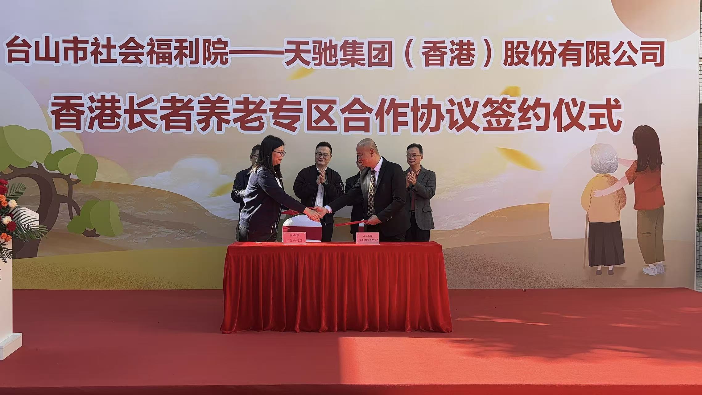 同心筑湾区,暖心安晚晴。近日,我司天驰集团(香港)股份有限公司与台山市社会福利院正式签署合作协议,携手打造香港长者养老专区,标志着台山跨境养老服务迈入专业化、标准化、港式化新阶段。